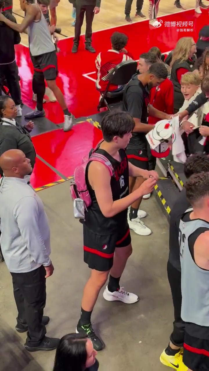 这手速得练练了杨瀚森背着尬舞时的粉色包包 给场边球迷签名