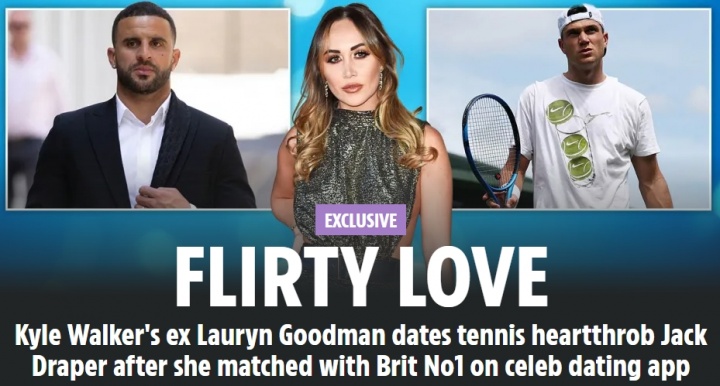 10月05日讯 太阳报独家报道,凯尔-沃克之前的情人劳伦-古德曼(34岁)与英国网球球员德雷珀(23岁)约会。